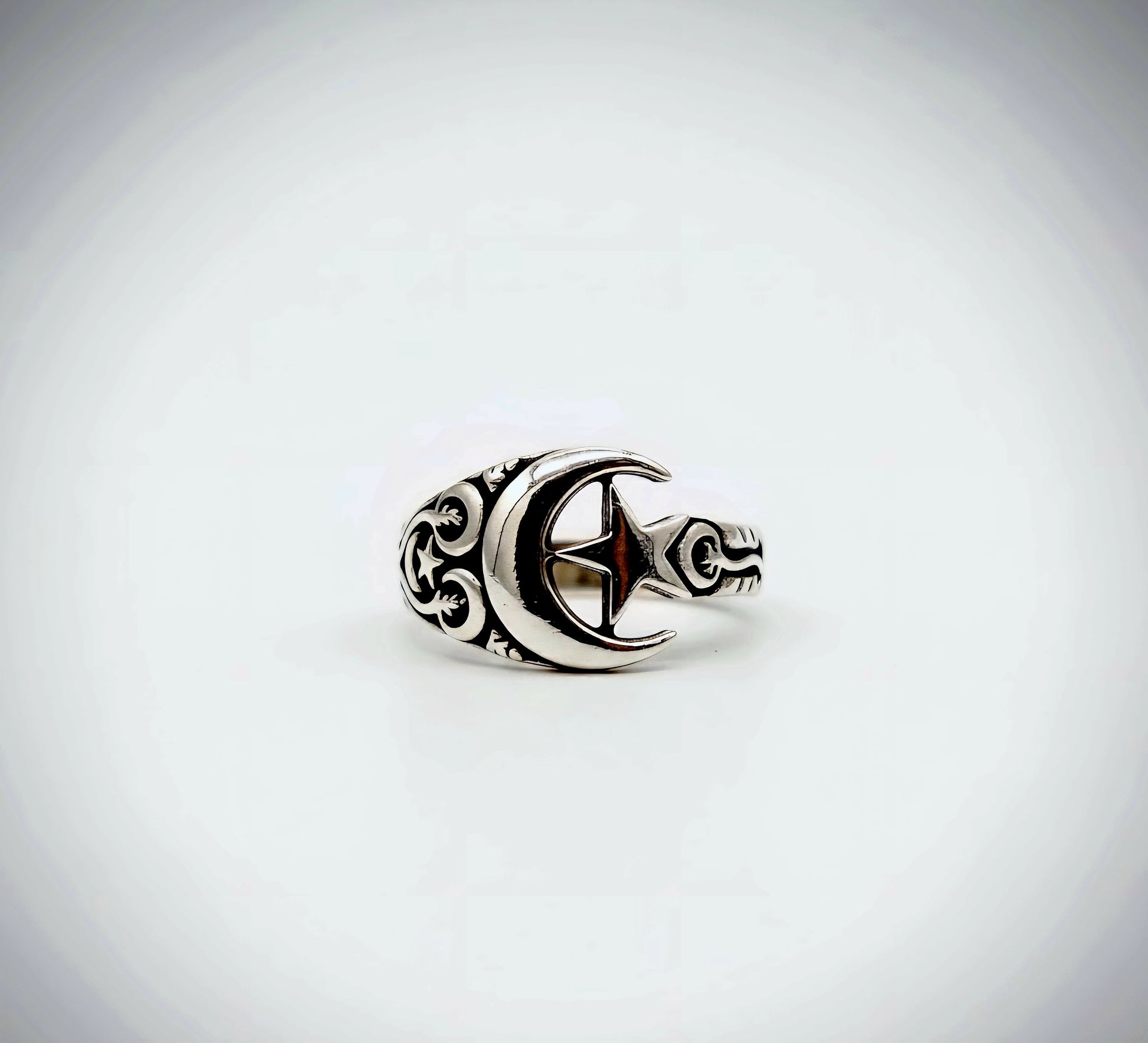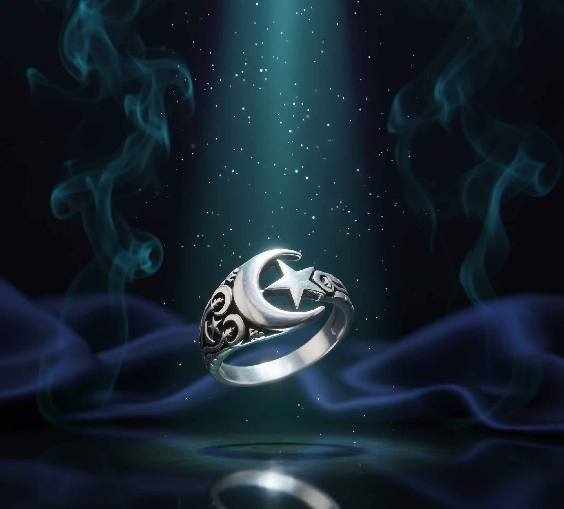 “Moon & Star Guardian Ring" – Celestial Protection in 925 Silver