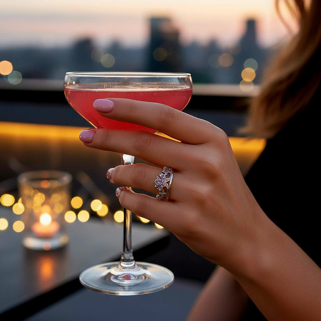 Wear your crown every day — elegance that glows from every angle.This enchanting tiara-style ring brings a soft, royal glow to your hand. Crafted in genuine 925 sterling silver, the crown design is set with delicate lavender gemstones that shimmer with a gentle, dreamy sparkle. The heart-shaped cutouts add a touch of romance, while the beaded detailing enhances its fairytale charm.